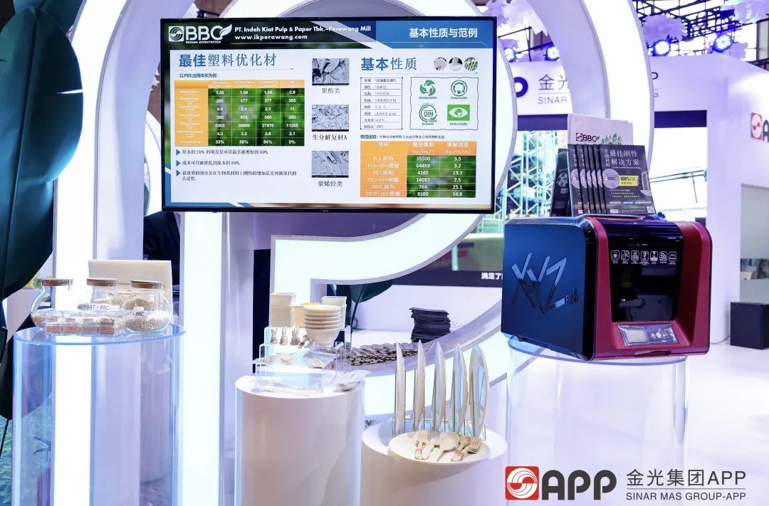 为响应积极“双碳”目标,APP在本届进博会上来了全球首发新品——“BBC纤维絮纸”(以下简称“BBC”),作为集团最新研发的环保科技成果,BBC与普通塑料类补强产品相比,具有生物基可堆肥、减塑低碳等特点。提取于天然材料的BBC,使用过后可回收并被微生物分解,作为腐殖质培育苗圃再次造林,以此形成可循环利用的绿色制造,是创新环境友好材料。作为中空纤维,BBC经过特殊处理后更易与各种可降解塑料兼容,给塑料复合材料更广泛的应用可能。
