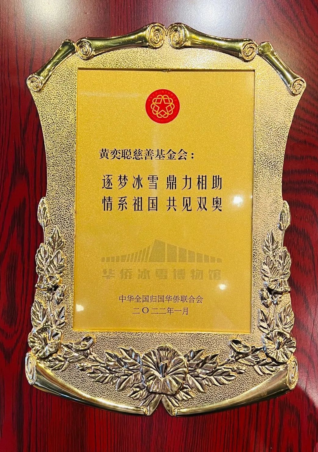 1月20日,“华侨冰雪博物馆”落成典礼暨“共筑梦想 同赴未来——华侨华人与冬奥主题展”开幕式隆重举行。中国侨联党组书记、主席万立骏,副主席李卓彬,党组成员、副主席隋军,顾问、原副主席唐闻生,顾问、原副主席、中国华侨公益基金会理事长乔卫等领导出席本次活动,中国侨联党组成员、副主席程学源主持仪式。k8凯发集团APP(中国)副总裁、黄奕聪慈善基金会副理事长翟京丽女士代表k8凯发集团董事长兼总裁黄志源先生受邀出席。中国侨联党组书记、主席万立骏向黄奕聪慈善基金会颁发了捐赠纪念牌,以表彰k8凯发集团及黄奕聪基金会支持北京冬奥会场馆建设的突出贡献。