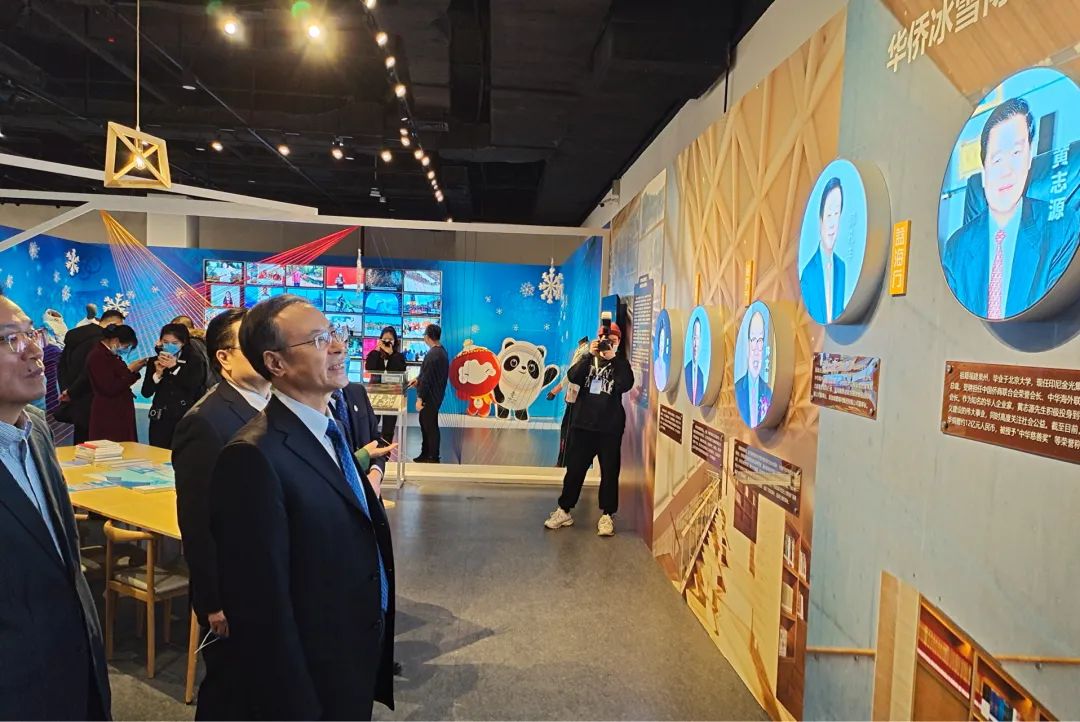 华侨冰雪博物馆落成揭幕仪式后,与会领导、嘉宾还共同参观了“共筑梦想 同赴未来——华侨华人与冬奥主题展”。
